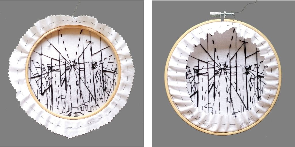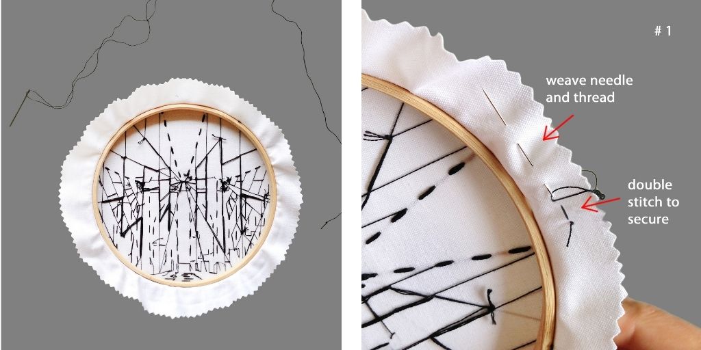 Welcome to our tutorial on how to finish the back of your embroidery (or cross stitch) hoop. Here you will learn how to gather the excess fabric and sew a felt backing to the back of your needlework.