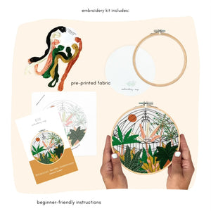 Hand stitch our vibrant Botanical Greenhouse Garden. This DIY embroidery kit comes with everything you need to complete your modern needlepoint. Detailed instructions and links to video stitch-tutorials make this kit great for beginners and the experienced alike.