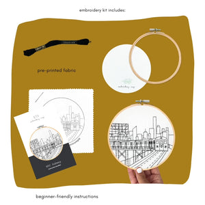 Hand embroider our best-selling NYC Subway design. This DIY embroidery kit comes with everything you need to complete your modern needlepoint. Detailed instructions and links to video stitch-tutorials make this kit perfect for beginners and the experienced alike.